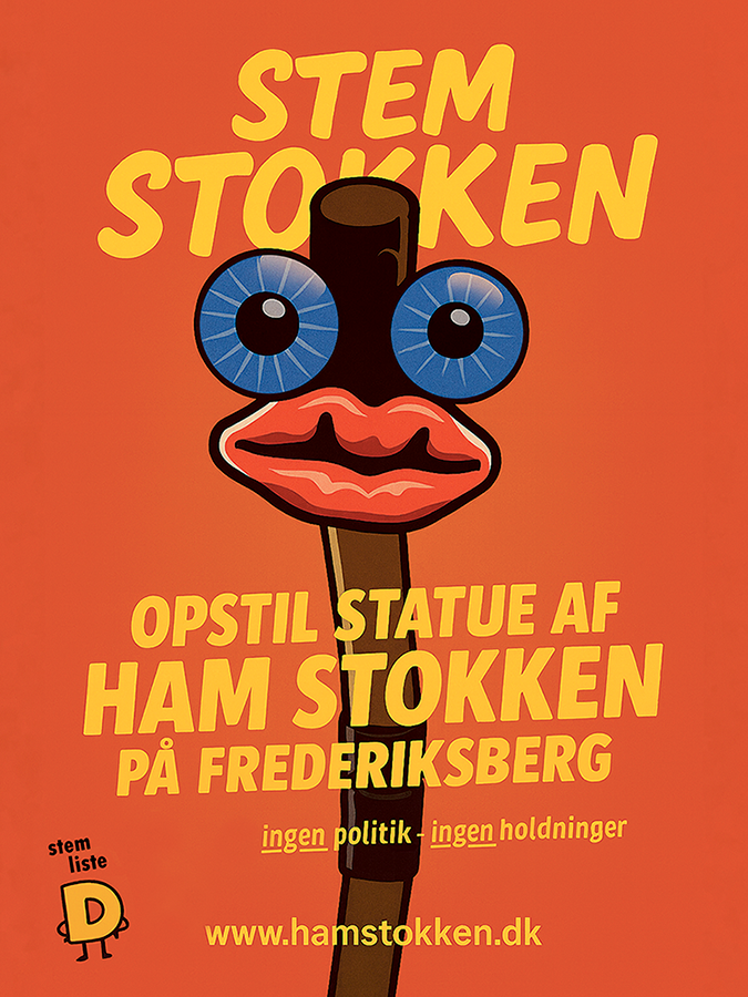 Ham Stokken har ingen mening om noget, men støtter alle politiske konstellationer, der vil opsætte en permanent statue af Ham Stokken på Frederiksberg.